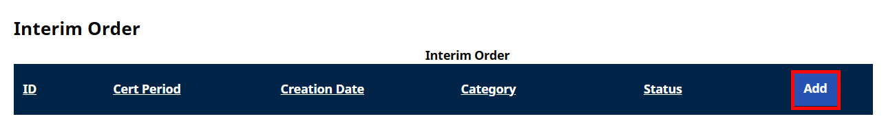 Select the Interim Orders link from the left navigation panel.