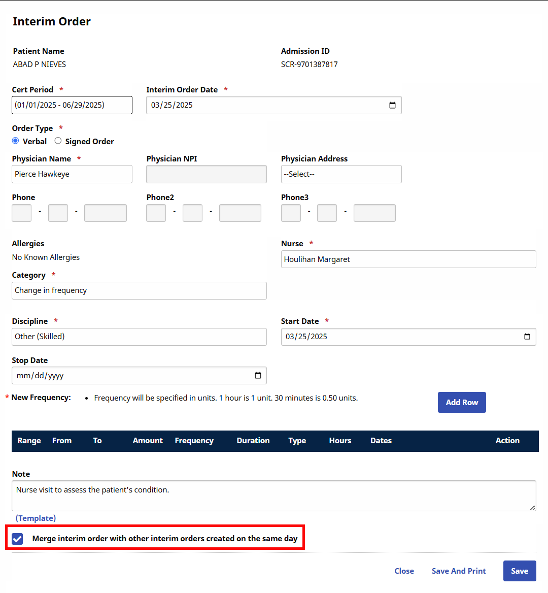 If multiple Interim Orders are applied to a single Certification Period, select the Merge Interim Order… checkbox at the bottom of the page.