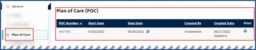 To review a Patient’s POC, go to Patient > POC. When POC information is updated, the system recalculates unbilled visits to verify that these visits remain POC compliant. POC is also recalculated after the POC Override request is processed by HHAeXchange. If a visit does not pass POC Compliance Requirements, then it appears in the Prebilling Review.