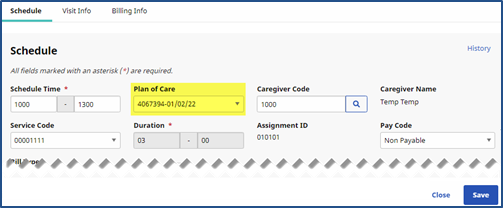 When scheduling a Visit on Patient > Calendar, select the applicable POC under the POC field. Once the Visit is saved, the system calculates the POC Compliance based on the Provider settings (as described in the section above). If the Visit does not pass the applied POC Compliance Requirements, then it appears in the Prebilling Review with a POC Compliance problem.