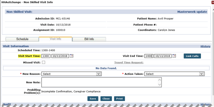 Provider bills a Claim. After Payer Adjudication, the Provider must make changes to Scheduled and/or Visit times. |