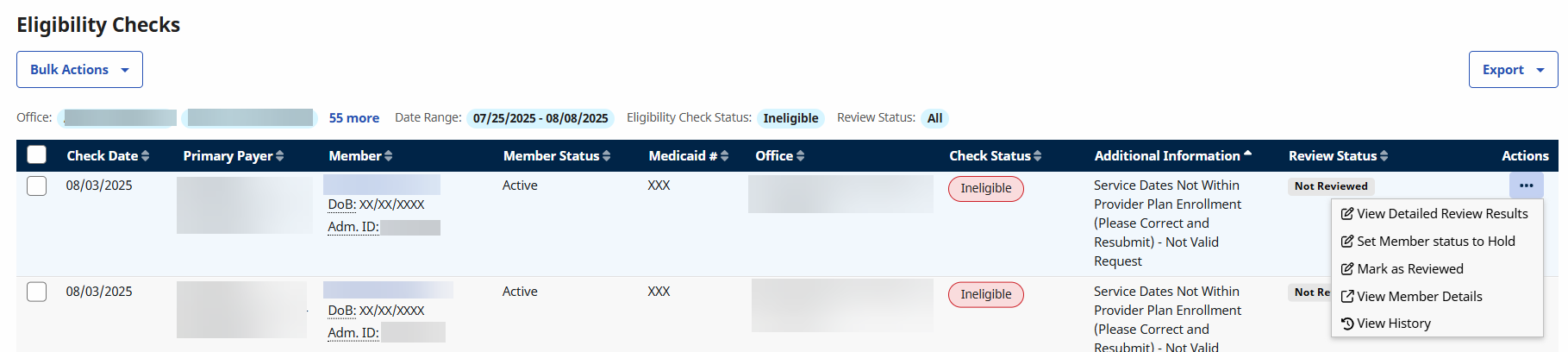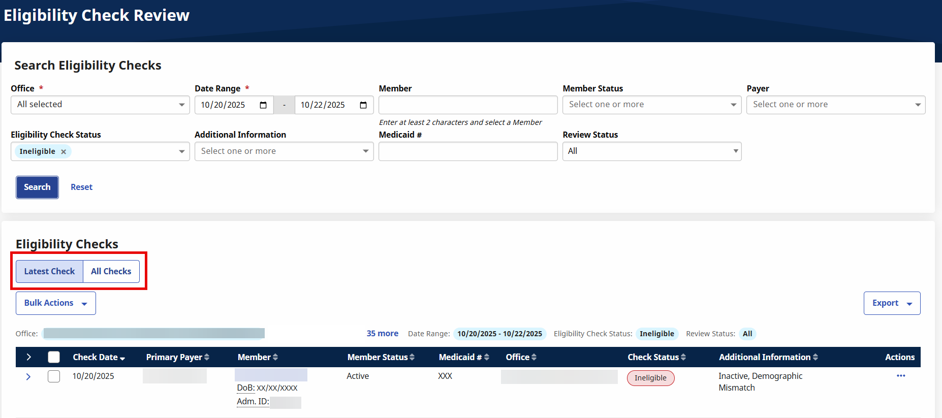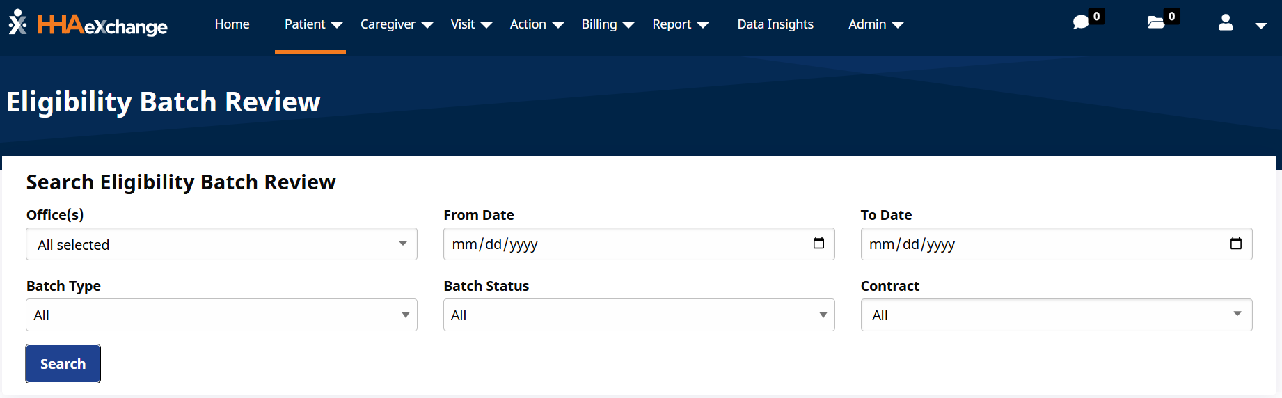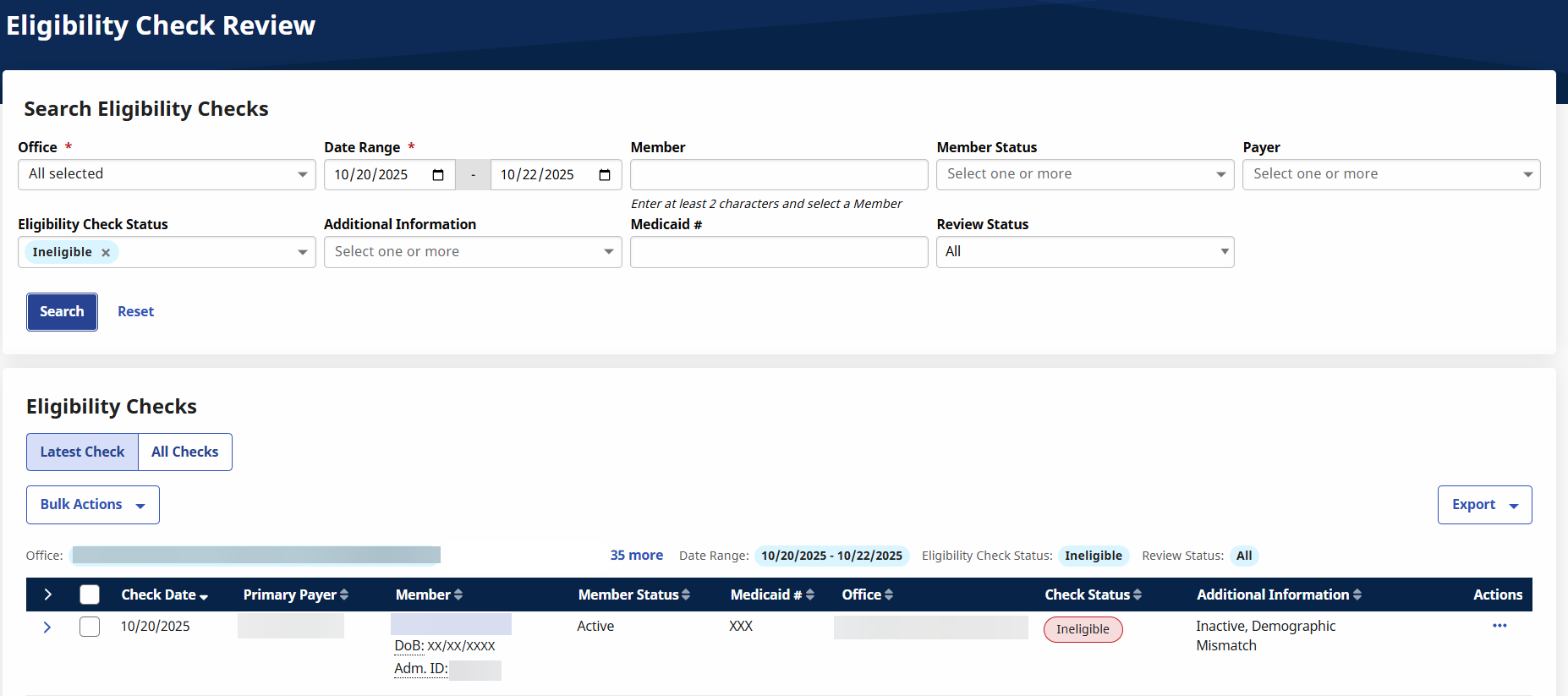 Eligibility Checks may be run at any time to check the status of a Patient’s insurance. This topic provides the necessary steps to run an Eligibility Check on a single Patient (ad-hoc), or as part of an Eligibility Batch.
