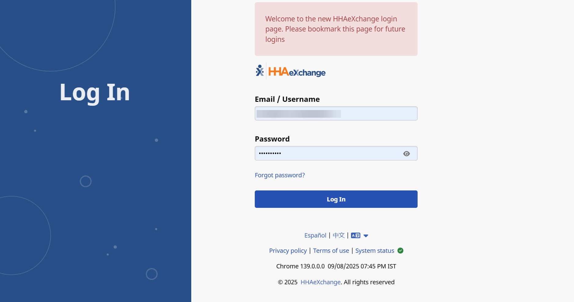 Open Google Chrome or Microsoft Edge internet browser and go to https://hhaexchange.com.