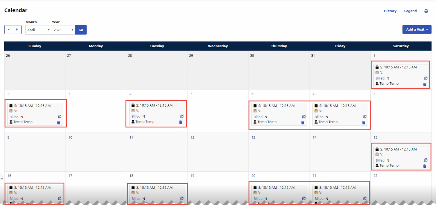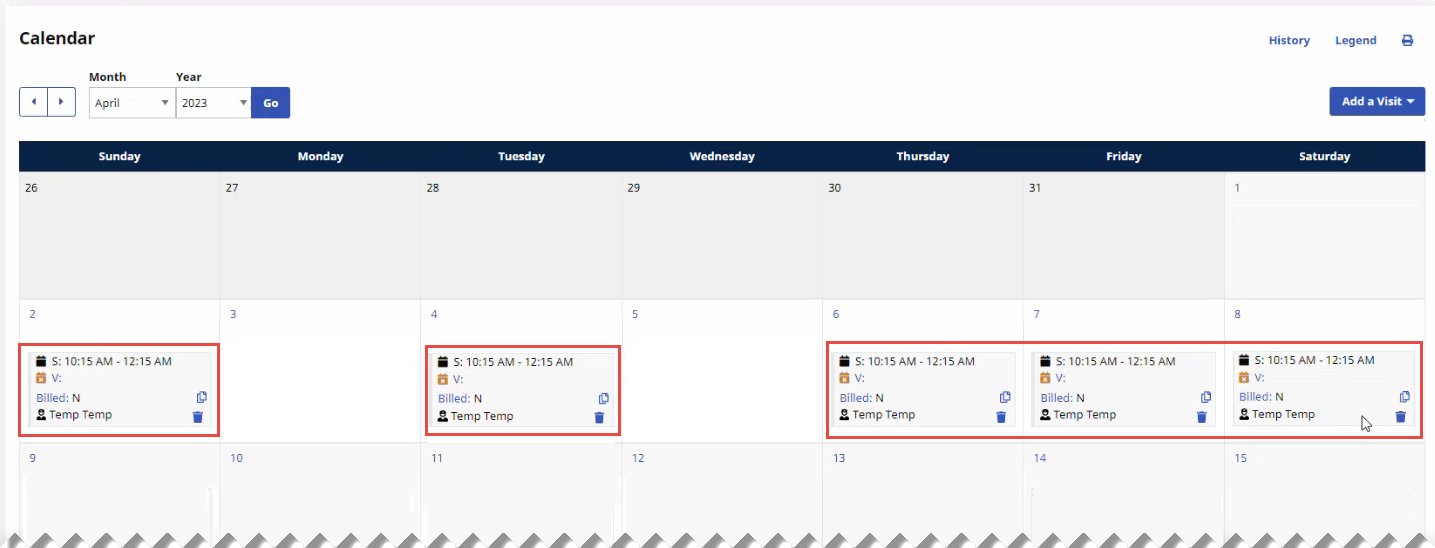 You can create multiple Master Weeks for a patient if the visit times and date ranges don’t overlap. For example: