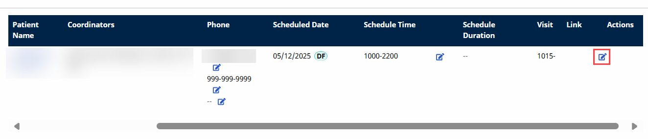 Click the number in the Caller ID column to view the Patient’s scheduled visits for the day.