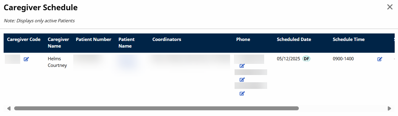 Click the Caregiver Name column to access the Caregiver schedule details.