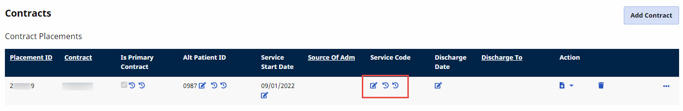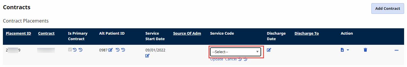 Patients who are receiving services under the associated Contract must have a Default Service Code.