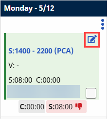 Hover the cursor over the visit cell and click the edit icon on the top-right corner of the cell.