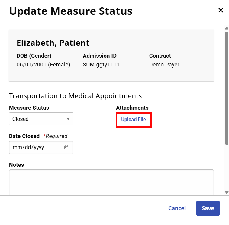 You can now upload files as attachments when updating Measure Statuses in Quality Insights.