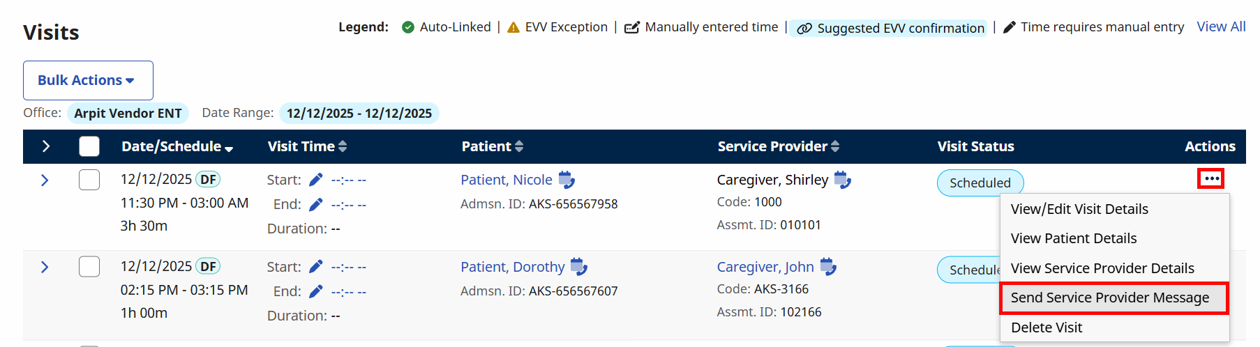 The HHAeXchange system now supports creating multiple unscheduled visits from EVV entries on the same day.