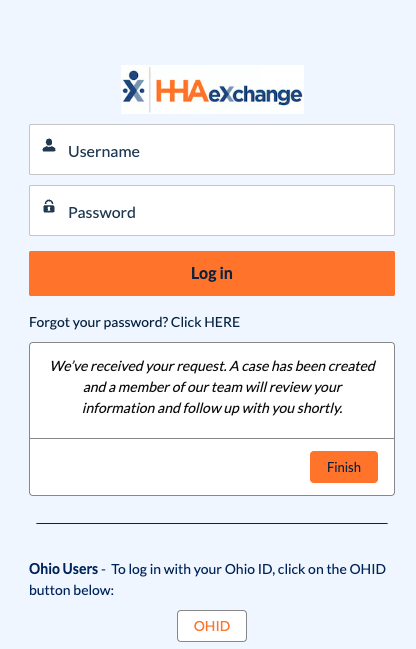 Once your request has gone through, a confirmation screen displays.
